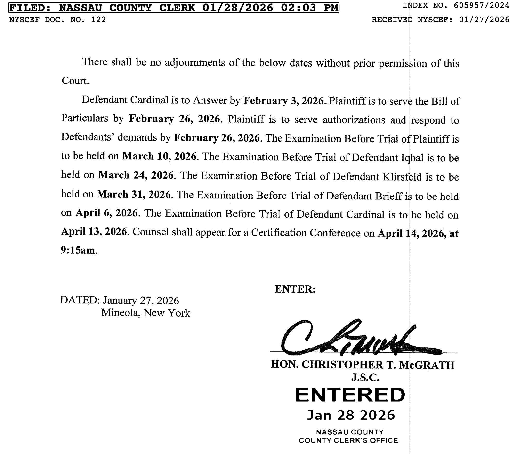 Justice is coming March 10th, 2026 Depositions start in Nassau Supreme Court.